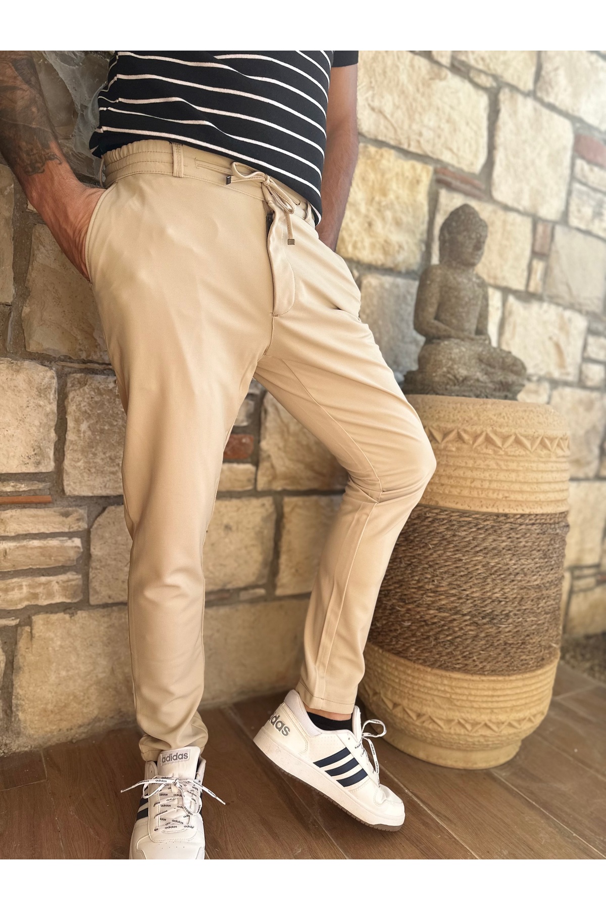 - Rahat hareket edebilmeniz için beli lastikli ve bağcıklı tasarımıyla konforlu bir kullanım sunar.; - Dört adet fonksiyonel cep ile eşyalarınızı güvenle taşımanız için pratik saklama alanları sağlar.; - Her yaş grubuna hitap eden geniş kullanıcı kitlesiyle herkesin gardırobunda yerini alabilir.; - Tüm sezonlarda rahatlıkla tercih edebileceğiniz orta kalınlıkta kumaşı, mevsim geçişlerinde idealdir.; - Sportswear koleksiyonunun bir parçası olarak spor şıklığını günlük yaşama taşır.; - Uzun boy kesimi sayesinde bacaklarınızı tamamen sararak şık bir görünüm kazandırır.; - Örme kumaş tipi, esnek yapısıyla gün boyu rahat etmenizi sağlar.; - Yetişkinler için özel olarak tasarlanmış bu jogger pantolon, her vücut tipine uyum sağlayacak şekilde dizayn edilmiştir.; - Jogger paça tipi modern ve trend bir stil oluştururken aynı zamanda konforundan ödün vermez.; - Dayanıklı materyali uzun süreli kullanım vaad ederken dokulu deseniyle dikkat çekici detaylar ekler.; - Trend ortamlarda bile stil sahibi görünmenizi sağlayacak bu jogger pantolon, gardrobunuzdaki vazgeçilmez parçalardan olmaya adaydır.